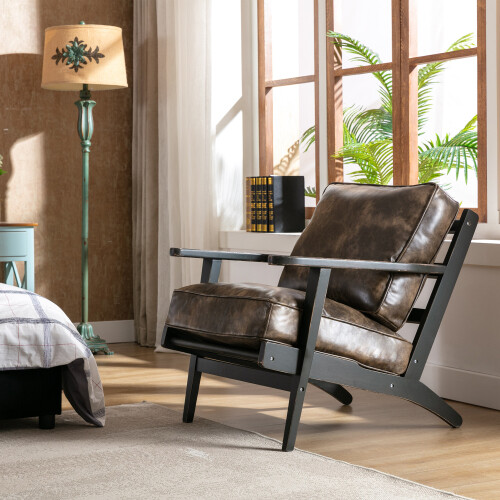 Solid Wood Removable Cushion Arm Chair Mid Century Pu Leather Accent Chair Pas Ebay